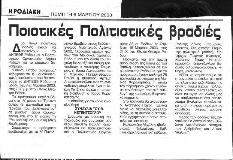 Σχόλια του Τύπου για την συγκεκριμένη εκδήλωση...